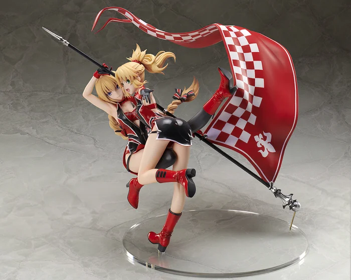 Jeanne and Mordred light up the lanes in 1/7 scale! Mordred and Jeanne’s massive flag is held off the ground thanks to super strong metallic inserts at the base, while Jeanne is kept off the ground thanks to Mordred’s tight squeeze! Ooh la la! The pair are both wearing tantalizing red and black race queen outfits. A glossy coating on their outfits gives off a shiny leather look – sure to feel smooth as an initial drift! And the combination of the girls in such a unique pose is without a doubt sexy and dynamic. With a celebratory smile on their faces, you’ll always feel like 1st place in the race when you gaze upon them!