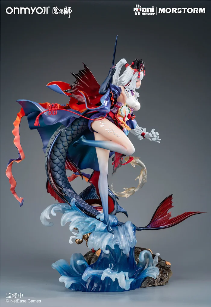 AniMester is bringing us a stunningly beautiful work of art in figure form with this release of Senhime from the popular mobile RPG game Onmyoji! Captured in 1/4 scale, the strong-hearted and devout merfolk princess measures nearly 20” tall and looks absolutely breathtaking from every angle. Captured floating above a crashing wave, every inch of her design has been sculpted immaculately, from the scales and iridescent look of her fish tail, to the tassels and flowing fabric of her outfit. And her realistic expression gives us a glimpse at her determination and resolve to protect her people. A true feast for the eyes with details to enjoy throughout every inch, she’s sure to be a treasured centerpiece in any fan’s collection.