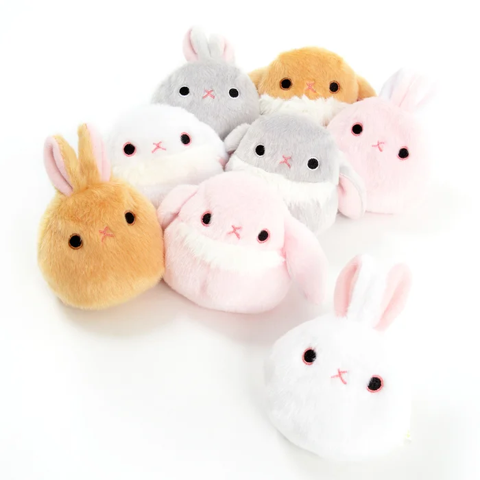 About 2.8” tall, they each come with two fluffy ears and a tail, and some of them even have a neckband made of soft white fur! Choose from White, Momo, Tea, Gray, Shiroppu, Momoppu, Haippu, and Chairoppu for a yummy pet bunny!